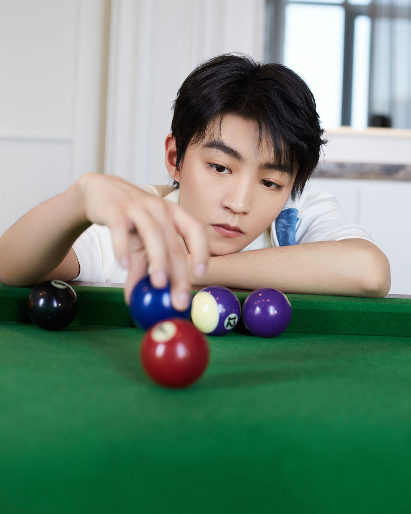 2022年5月20日,王俊凯发布一组台球写真大片,身穿白色翻领衬衫外套的他尽显成熟味道。