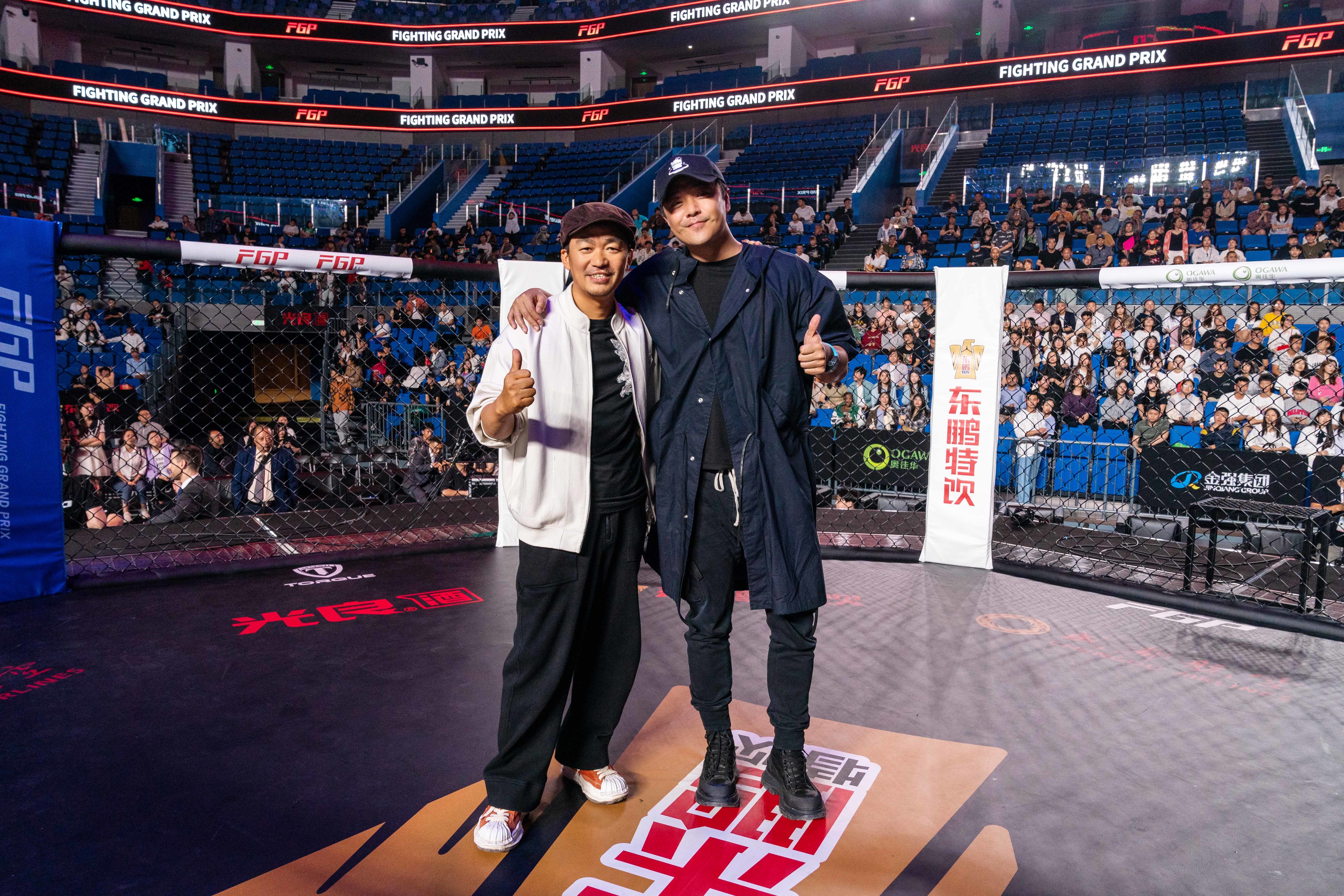 由王宝强执导并领衔主演的现实题材电影《八角笼中》正在热拍,近日王宝强好友,著名导演、演员陈思诚现身拍摄现场,为王宝强导演打call,并送来饮品犒劳现场工作人员。现场,陈思诚与王宝强热聊正在拍摄的《八角笼中》,两人在八角笼擂台上做出搞怪动作,兄弟相聚其乐融融。