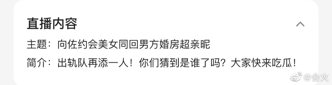 此前一早,内娱狗仔江小宴爆料,称内娱出轨队又添新成员,狗仔张小寒还称内娱会爆炸,引发网友热议和期待,这件事情最后让吴奇隆和刘诗诗无辜躺枪。21日下午5点,江小宴直播爆料此前预告的瓜,称向佐带着美女一起回婚房疑似出轨。