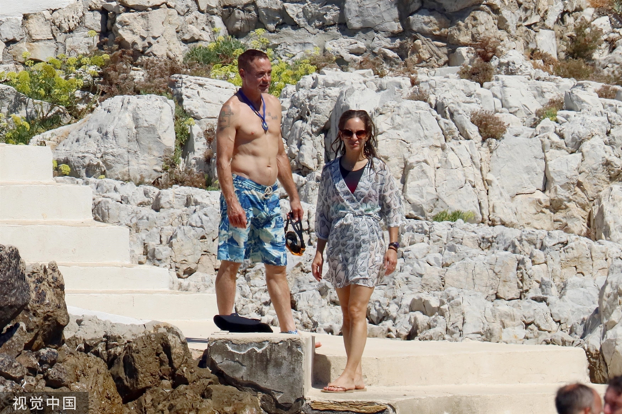 当地时间2022年8月24日,法国南部,小罗伯特·唐尼(Robert Downey Jr.)与妻子苏珊(Susan Downey)带女儿沐浴阳光。