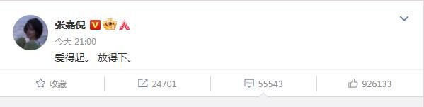 买超出轨消息曝光后,引起网友热议,有人肉搜出小三身份,痛骂买超太对不起张嘉倪,认为他怎么忍心背叛这么美的妻子。没想到张嘉倪在25日晚发文针对老公出轨做回应,仅霸气留下6字,“爱得起,放得下”。
