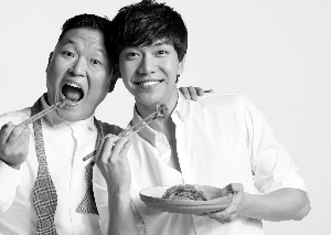 Psy与李胜基一起拍广告,之前Psy还曾为李胜基的出道歌曲《你是我的女人》作词、作曲。