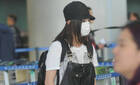 李湘戴黑超现身机场 王岳伦紧跟推行李