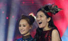 张柏芝与陈乔恩同场看秀 脱皮草秀香肩