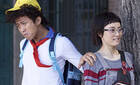 孙俪穿短裤秀美腿 邓超高举双手比V抢镜