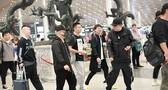 社会社会!郭德纲于谦出行阵仗大 数十黑衣人紧随